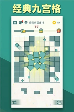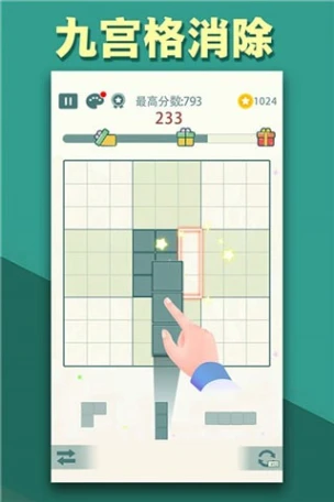 蓝天下载网为您免费提供方块九宫格下载,这是一款以消除为核心的休闲益智游戏。玩家需将下方三组方块拖动至九宫格棋盘,通过横竖列拼合完成消除。清新简约的画面风格与创新的非竖落式玩法,让玩家在策略布局中感受解谜乐趣。游戏采用动态难度机制,随着关卡推进,方块组合复杂度逐渐提升,考验玩家的空间想象力与快速决策能力。失败判定机制要求玩家合理规划棋盘空间,避免方块堆积导致游戏结束。内置多样消除特效与成就系统,为每次成功消除增添视觉惊喜。
