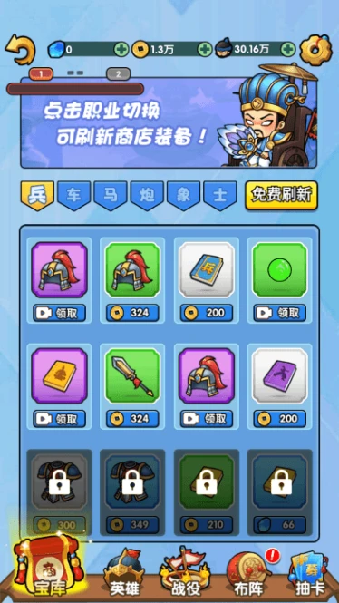 1.限定抽卡机会多,每日可免费领取,助力玩家解锁大量Q萌武将,丰富英雄阵容。