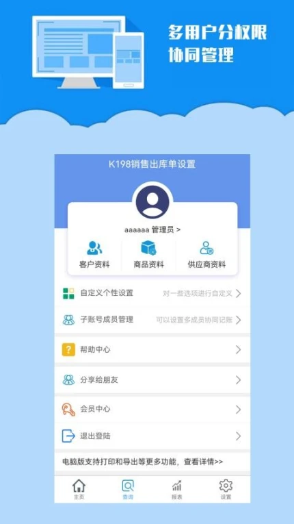 蓝天下载站为您免费提供k198销售出库单手机版下载,k198销售出库单手机版是一款专注于门店销售与库存管理的效率办公应用。您可通过该应用轻松完成门店的销售管理与库存数据管理,其丰富的管理工具能助力您处理各类管理工作。同时,它还支持多平台端口的数据信息同步,让您随时查询所需数据。您能使用客户资料管理功能来整理信息,轻松查找所有客户资料;利用商品资料管理功能,对门店销售的商品信息进行有序管理。此外,该应用还可对成员账号使用权限进行分级管理,限制特定等级账号的使用范围和功能。有需要的用户不妨下载体验!
