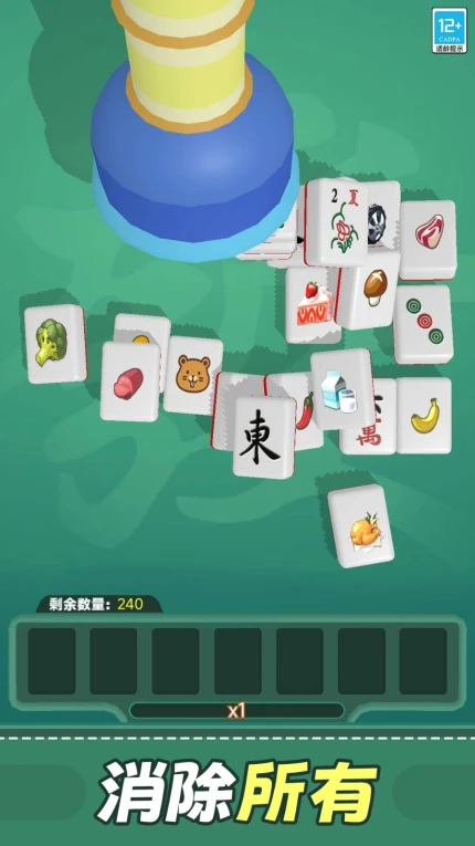 1、基础操作:通过滑动连接3个以上相同麻将方块触发消除,每次消除清除对应层数方块并得分。