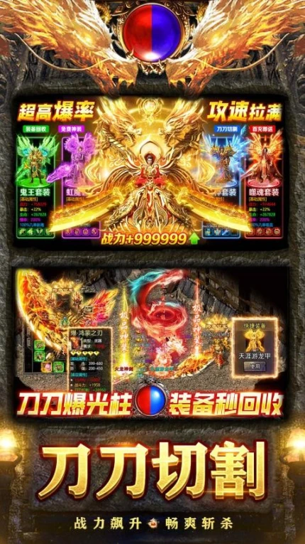 3、满屏爆装机制实现神装遍地,角色属性随装备等级持续提升。