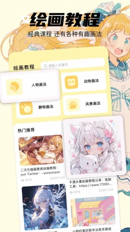 涵盖丰富多样的绘画教程资源,让用户学习绘画技巧更简单,提升绘画能力。