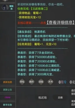我的江湖日记是一款以武侠世界观为核心的RPG手游,采用极简水墨画风构建江湖场景。玩家通过文字交互推进剧情,主界面实时显示任务目标与剧情节点,跟随主线解锁桃源危机等特色事件。游戏内置动态社交系统,可与不同性格的NPC建立羁绊,协同应对突发事件。助人为乐系统设计巧妙,清除妖兽可获得葡萄等特色奖励,逐步积累江湖声望值。