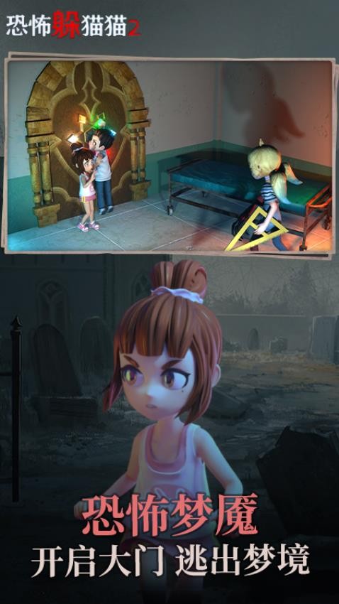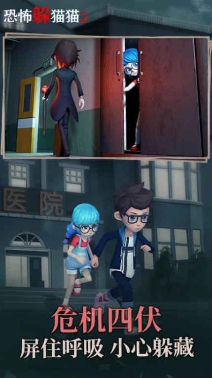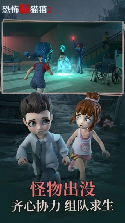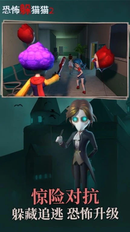 恐怖躲猫猫2是一款融合解谜与非对称竞技的冒险游戏,玩家可在4V1逃脱者模式或传统躲藏者/抓捕者双模式中选择阵营。通过收集隐身药水、破解宝箱获取宝石,最终开启逃生之门完成逃脱。游戏内含多角色选择、动态追击系统及NPC线索提示,配合阴郁的背景音乐与昏暗场景,强化心理压迫感。每局限时30秒的策略准备阶段,考验玩家对场景布局与道具使用的即时判断。