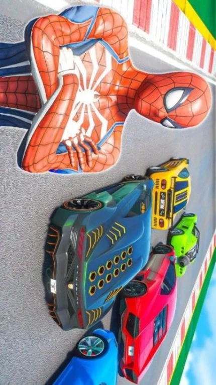游戏采用3D物理引擎构建高精度赛道模型,动态天气系统与昼夜循环增强沉浸感。车辆碰撞效果遵循真实物理规则,氮气加速时的引擎轰鸣与轮胎摩擦声效精准还原。漫威英雄主题涂装设计提供个性化选择,每辆跑车配备专属技能特效,如钢铁侠推进器加速与雷神之锤护盾。