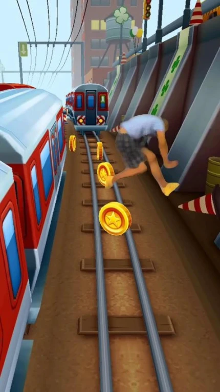 3、向上跳跃:向上滑动屏幕,人物会向前跳跃跳过障碍,但高一点的地铁列车等无法跳过。