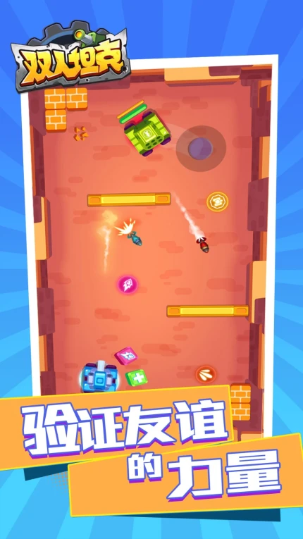 蓝天下载网为您免费提供双人坦克手游下载。双人坦克手游是一款集动作冒险与对战元素于一体的休闲竞技游戏。在游戏里,玩家可与队友联机协同攻击对手,开启精彩的双人对战模式。其玩法丰富多样,有多种坦克类型供玩家选择,还能通过反射技巧进攻敌人,2对2的组队玩法更是充满挑战。玩家在游戏中可体验到竞技的欢乐,享受独特的战斗乐趣。双人坦克手游凭借其独特的玩法和丰富的内容,吸引着众多玩家前来试玩。