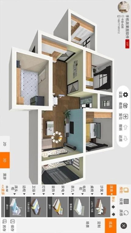1.操作界面采用模块化设计,新手用户可在30分钟内掌握基础操作。素材库包含10万+种家具模型,涵盖现代/古典/北欧等主流风格。
