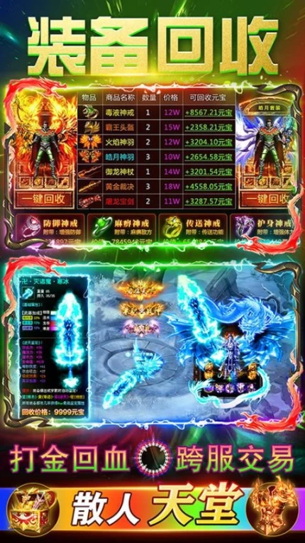 5、自由交易市场支持跨服流通,装备打金回血模式开辟新型游戏经济生态。
