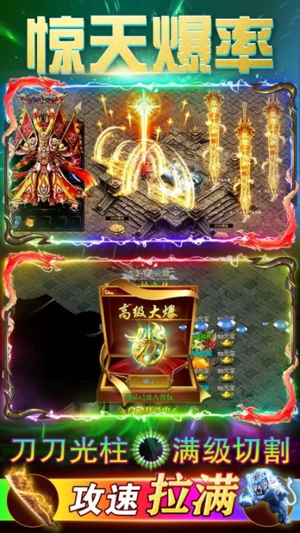 3、惊天爆率配合满攻速设定,刀刀暴击特效带来视觉与操作的双重爽感。
