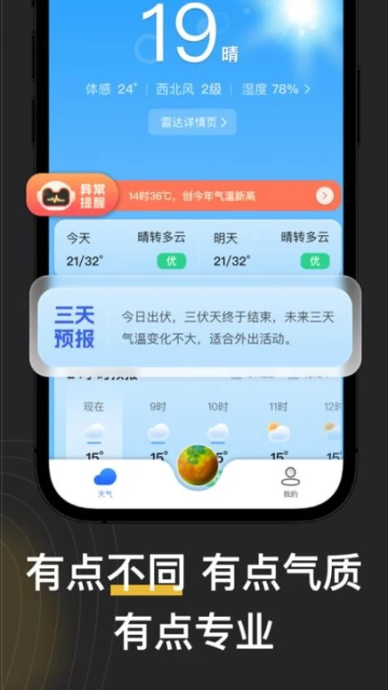看天去广告版是一款专注气象服务的实用工具,提供实时天气预报、空气质量监测及全球气候数据可视化功能。用户可通过气象雷达图预判灾害风险,查阅历史天气档案对比气候变化趋势。应用内置专业天气工具包,支持城市精准搜索与灾害预警推送,界面无广告设计提升使用体验。