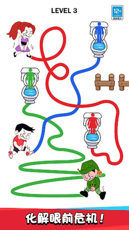 蓝天下载网为您免费提供解环大师手游下载。这款休闲益智游戏以画线解谜为核心玩法,玩家需通过连接场景中的人物与对应物品完成挑战。游戏融合了连线、配对、闯关等多元机制,场景涵盖车辆、马桶、卷纸等生活化元素,无广告设计确保流畅体验。