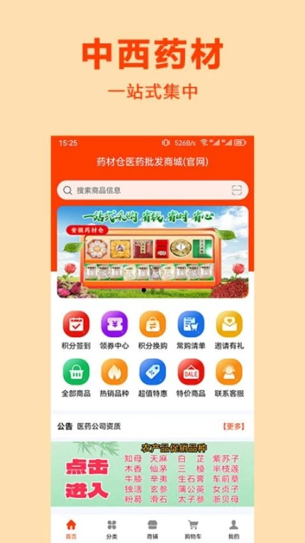 蓝天下载站为您免费提供药材仓最新版下载,这款生活实用类应用重新定义药材采购体验。平台汇聚海量正品药材资源,支持精准查询与资质认证商铺,用户可一键下单享受极速配送。通过积分签到、优惠券领取等福利,降低采购成本,实现高效便捷的药材采购服务。