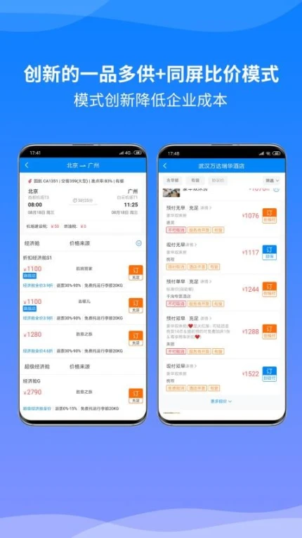 通过同屏比价等创新模式,有效降低企业差旅等费用成本,提升企业经济效益。