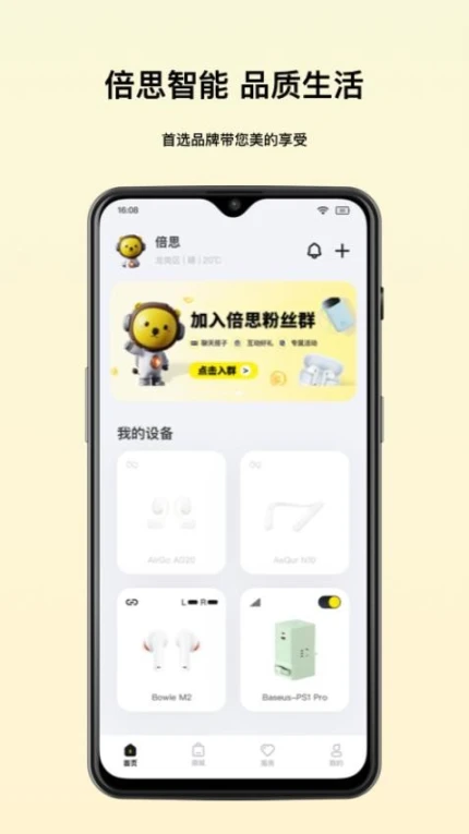 蓝天下载站为您免费提供倍思官网版下载。倍思官网版是一款实用的系统工具类应用,它是倍思智能产品的管理平台。用户可通过该应用轻松便捷地用手机连接智能产品,快速添加所需设备并进行操作。同时,它还支持将设备分享给家人,实现科技共享。此外,倍思官网版还设有线上商城,用户能在此选购精品,参与丰富活动并轻松下单。