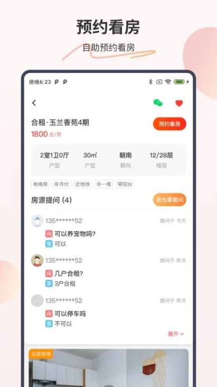 3.预约看房功能,支持在线提前预约,方便线下实地查看心仪房源。