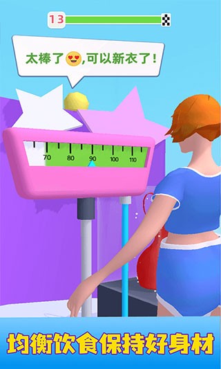 5. **多人对战**:支持在线匹配,与其他玩家竞速比拼减肥效率。