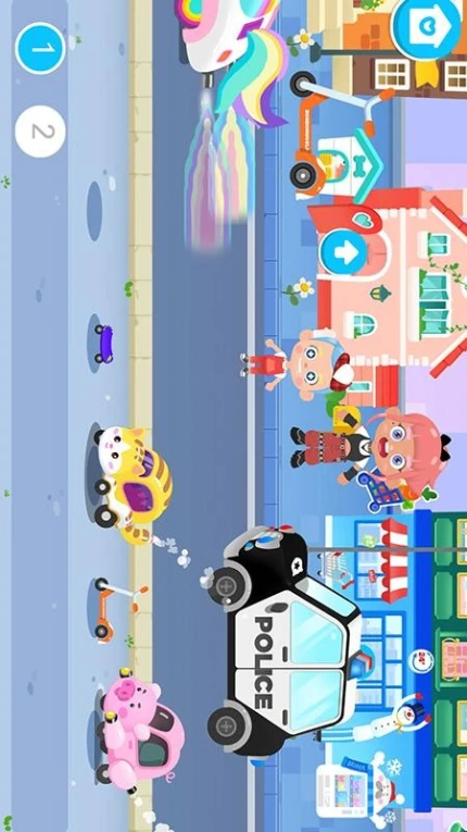 1.卡通温馨的画风设计,整个场景充满童趣元素,让玩家沉浸在欢乐的小镇氛围中。