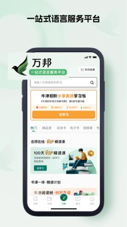 蓝天下载站为您免费提供万邦APP下载,万邦APP是一款专注于教育学习的软件,提供万邦APP下载、万邦官网版下载等服务。该应用具备专业实用的特性,是语言学习的得力助手。在万邦APP中,用户能通过多样的学习方式,在线学习英语,轻松掌握学习技巧,提升英语词汇量和理解能力,进而提高阅读水平。