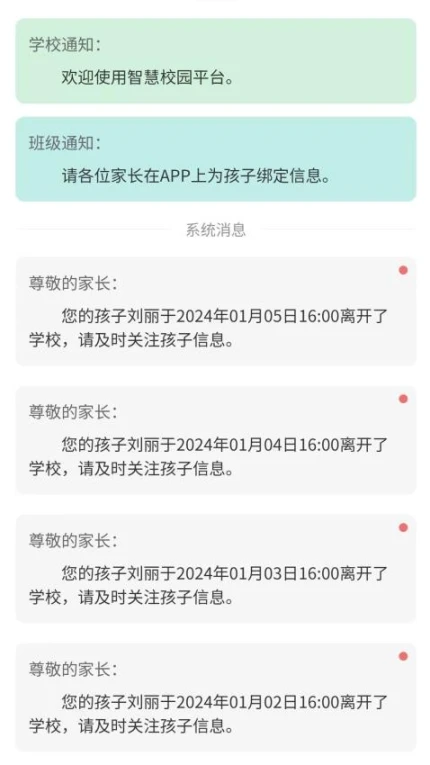 5.信息通知功能及时推送学生动态,家长可查看各类通知和消息。
