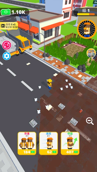 1、简单点击放置,轻松开启游戏,利用垃圾桶和车辆提升效率。