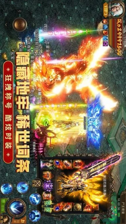 精美的炫酷传奇战斗画面,打宝光柱特效夺目,给玩家带来震撼的视觉体验。