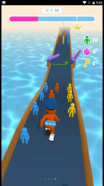 2、跑酷中躲避不同颜色橡胶人阻挡。