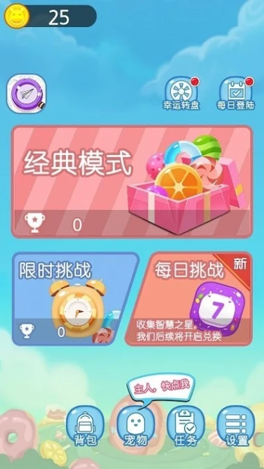 点点消大师是一款极具趣味性的休闲益智类消除游戏。它拥有丰富多样的闯关模式,经典消除模式让玩家体验传统消除的乐趣,限时挑战模式则考验玩家的反应速度和策略能力。游戏中出现的元素丰富,有水果、饮料、足球等各种物品,为消除过程增添了不少新鲜感。玩家还能在游戏中培养宠物,不同的宠物能为挑战增加分数,如猫咪可增加4%的分数。每天更新的全新挑战和专属挑战关卡,让玩家持续感受到新奇的体验。在无聊的时候,进入点点消大师游戏,既能打发时间,又能收获欢乐。