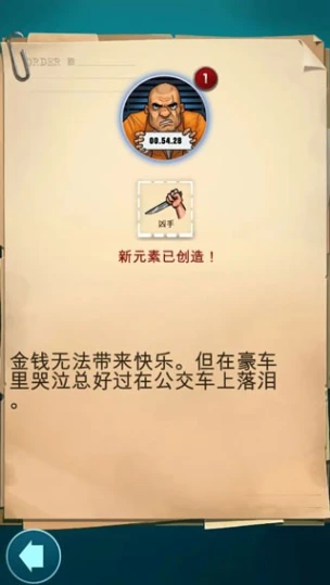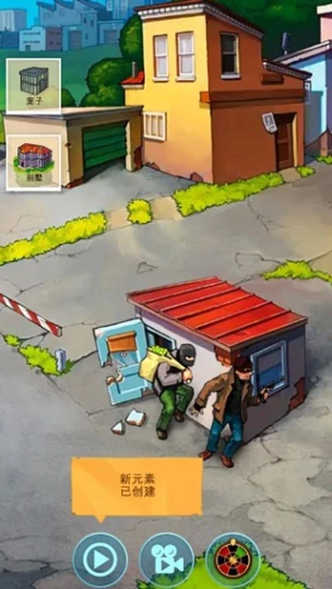 超过200种物品合成配方,通过元素组合触发连锁反应,如刀刃碰撞生成火拼指令,金币+人物合成罪犯形象。