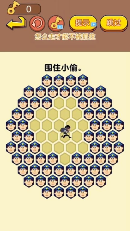 小偷逃脱需寻找薄弱包围处,玩家要观察元素位置找突破口,考验策略思维。