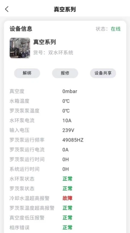 3、在线查看设备信息的真空系列,了解设备详细情况。