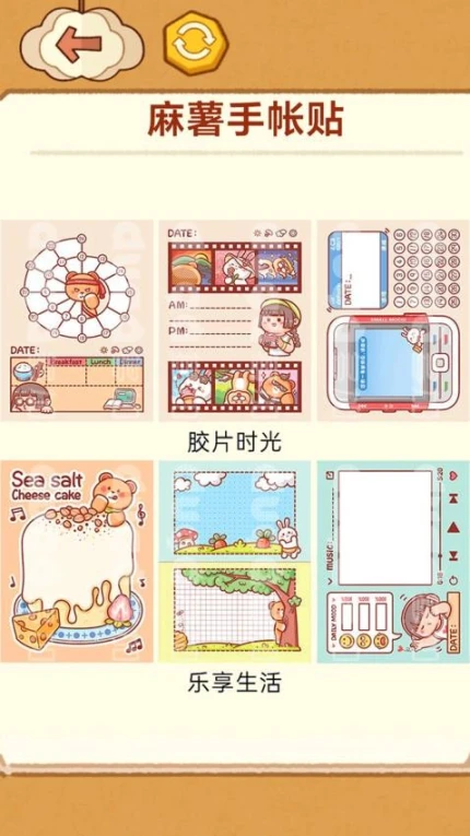 游戏为各类场景搭配可爱人物贴纸,玩家能自由安排其位置,增添手账的趣味性。