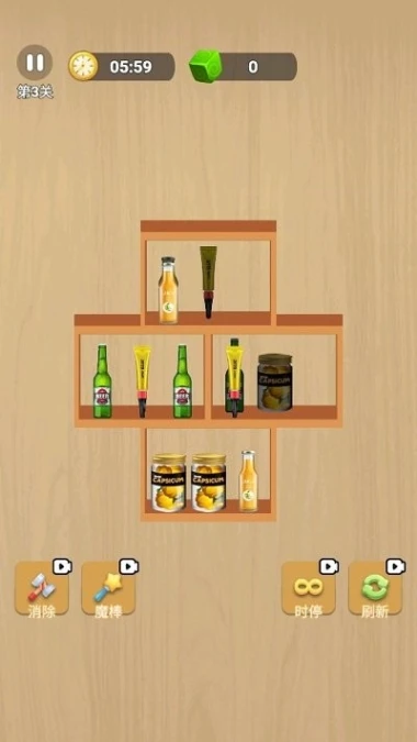 5.货物种类多样,包含水果罐头、洗发水等,丰富游戏消除元素。