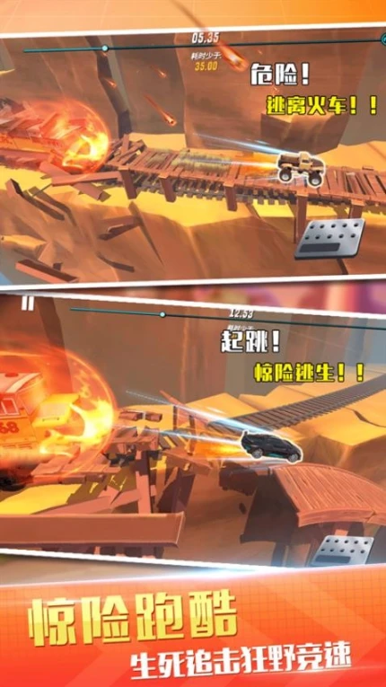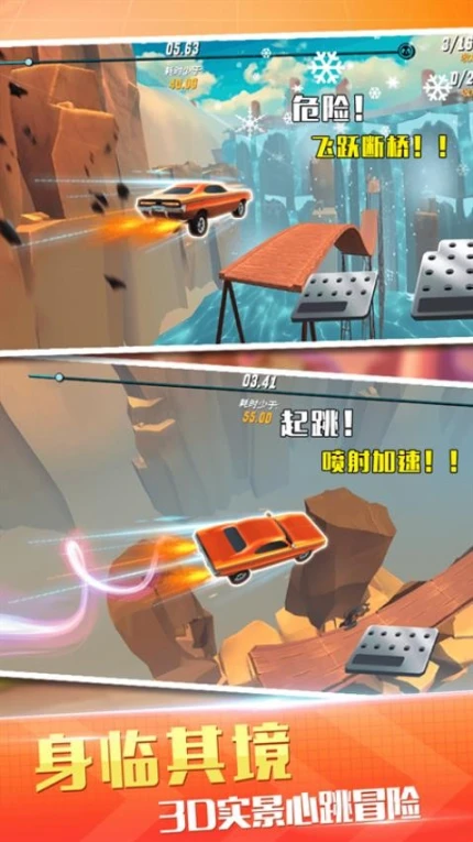 2、在木桥塌陷前完成跳跃,需预判断裂位置与车辆惯性轨迹。