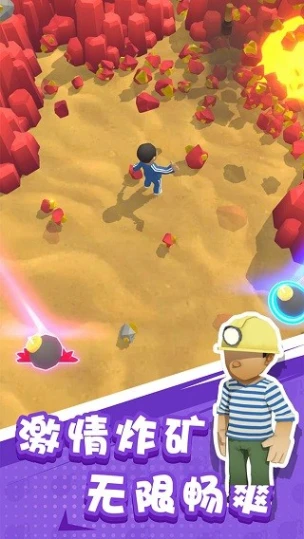 1、轻松移动:拖动屏幕即可移动角色,找到合适位置安放炸药,轻松开启矿石开采。