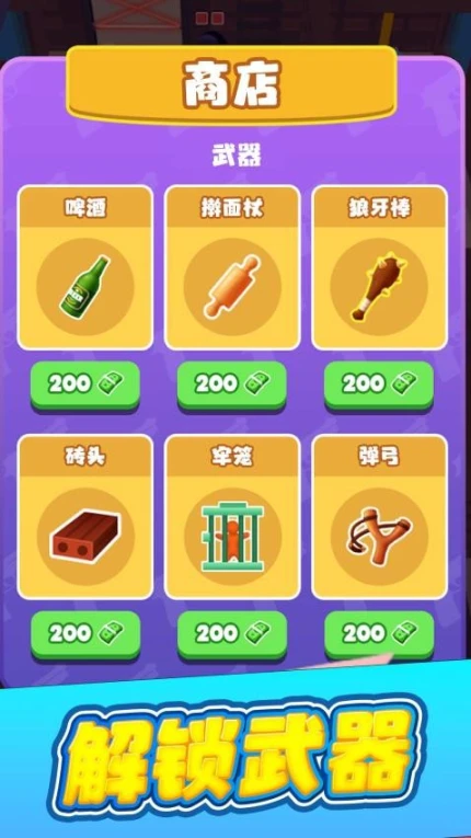 大量不同类型武器可收集,使用金币就能解锁,增加了游戏的养成元素。