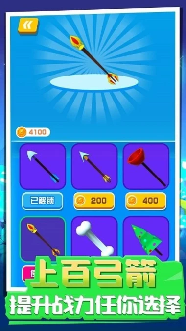 5、多样弓箭,游戏提供多种弓箭,包括正常箭支、骨头箭支等。