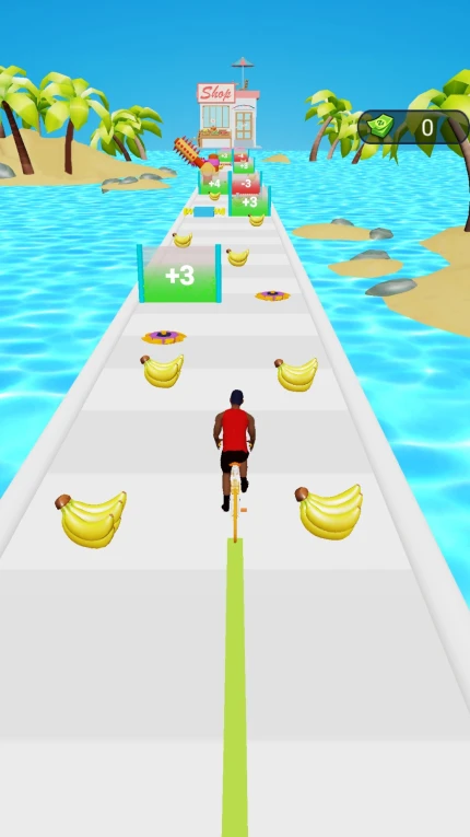 1、速度变化:实时调整自行车速度应对突发障碍,谨慎操作避免失误。 2、香蕉数量:地面香蕉种类随机变化,多收集可兑换额外资金。 3、成倍奖励:终点冲刺路线隐藏高倍奖励机制,提升最终收益。 4、大摆锤力量:观察摆锤移动方向规避碰撞,不同摆锤力量差异显著。 5、运输方式强大:自行车载具效率突出,个性化改装强化竞速表现。