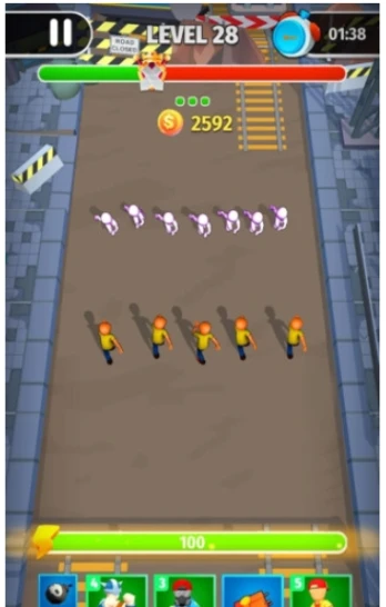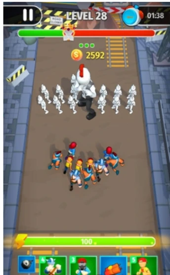 1.自由城市奔跑,吸引人群吞噬小队伍,壮大自身队伍,体验独特成长乐趣。