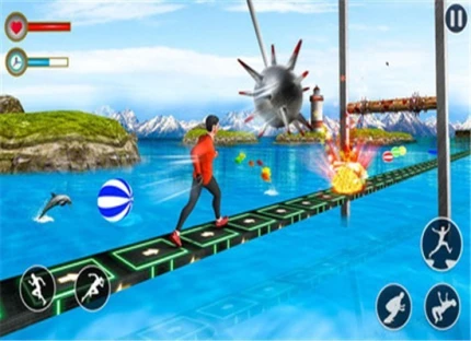 特技人水上运动是一款以水上竞技为核心的休闲益智手游。核心玩法围绕特技演员的平衡控制展开,通过点击与滑动操作实现前进、后退、跳跃等动作。游戏包含多样化障碍物系统,如爆炸装置、彩色圆圈等,需在限定时间内完成突破。观众欢呼机制与成就系统构成双重激励,胜利后可解锁高级称号与复活道具奖励。3D视觉效果与动态音效强化竞技氛围,适合追求刺激与策略结合的玩家群体。