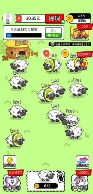 1.合成即领红包:每完成一次羊羊合成,均有机会获得现金奖励。
