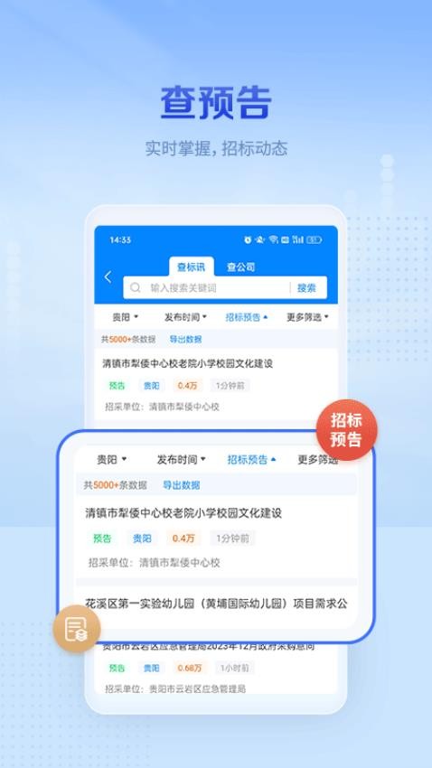 蓝天下载站为您免费提供今日招标官方版下载,这款企业招投标信息服务应用汇聚全国项目信息,支持实时查询招标公告、中标结果及变更动态。用户可通过智能监测功能追踪竞争对手,获取最新行业资讯。平台覆盖建筑、医疗等多领域,助力企业精准参与投标。