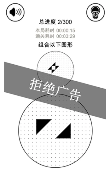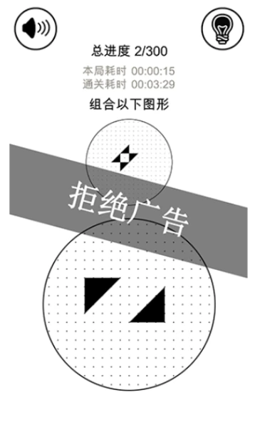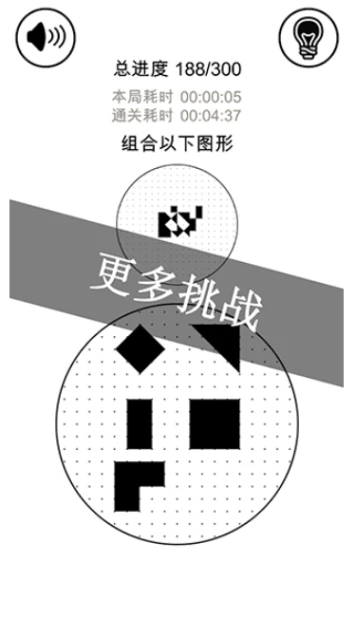 3、当前共有300个关卡,基础图形数量递增,难度也逐步增加。