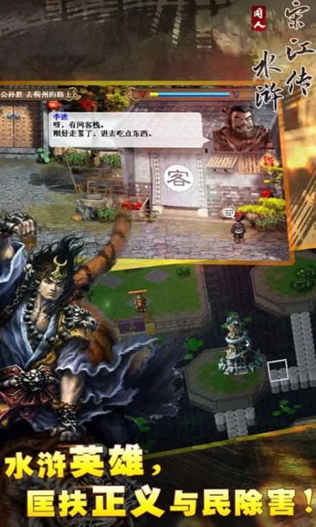 水浒宋江传以经典名著为蓝本,采用回合制策略战斗系统,玩家需根据兵种特性搭配阵容,参与经典战役并解锁特殊关卡。游戏内置自动升级与功勋制度,降低养成压力,同时提供红线支线剧情选择,每个决策都将影响最终结局。多维度养成体系与地形适配机制,让战术布局更具策略深度。