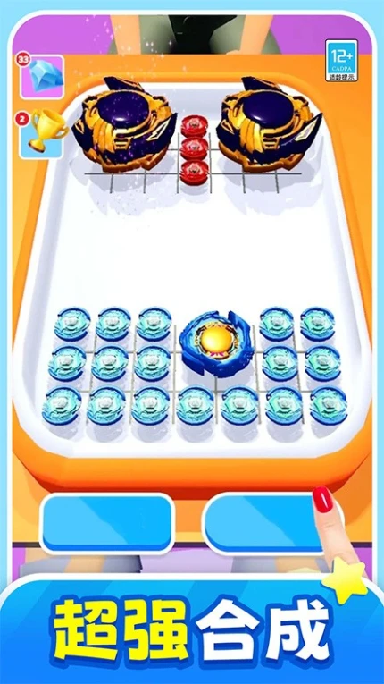 4.多样合成机会,选定最佳元素合成完美陀螺,提升陀螺的属性和能力。