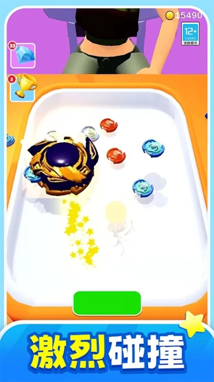 2.升级提升属性,不断升级陀螺可获得更高等级,使其色彩丰富、速度和攻击值提升,发挥策略击败对手。