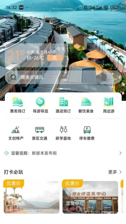 邵女坪度假区官网版是一款专注于旅游度假服务的综合平台,涵盖票务预订、导游导览、酒店预订等核心功能。用户可在线完成餐饮美食选购与停车费用缴纳,通过定位权限获取周边景点信息。平台设有专属福利板块,提供优惠券与折扣活动,帮助用户降低旅游成本。所有服务费用公开透明,订单状态实时可查,保障消费权益。