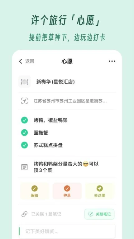 4.详细信息记录:使用心愿单记录时,可详细记录地址和内容,让旅游计划更具针对性。