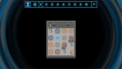 1、通过虚拟摇杆控制猫咪移动,点击屏幕触发时空跳跃。跳跃后需在回合结束前返回初始位置。