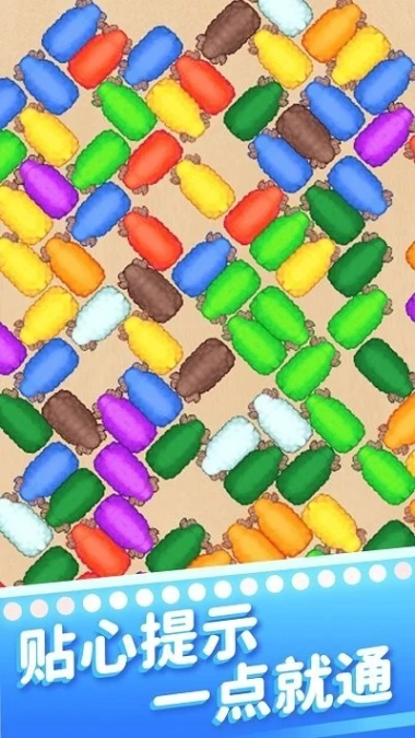 5、小羊们形成五颜六色的画面,每个关卡布局不同,为玩家带来丰富多样的视觉体验和新鲜感。
